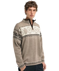 The Blyfjell is a best-selling men’s sweater rooted in timeless Norwegian tradition. Made from 100% lightweight wool, it offers natural warmth and comfort while featuring a quarter-zip neckline with a fleece-lined collar for added softness. The intricate design showcases classic Norwegian folk patterns, including variations of the iconic eight-petal rose – a symbol of Norwegian heritage and artistry.