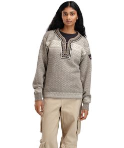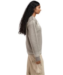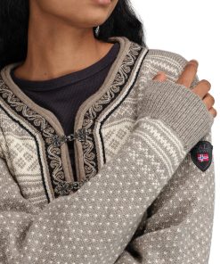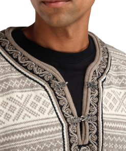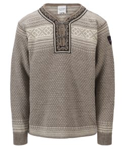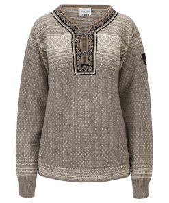 The Setesdal design is Norway’s most famous pattern. This is the original “lusekofte,” knitted in 100% Norwegian wool, with Norwegian-made pewter clasps and woven bands, identical to the original design. The wool sweater features the well-known “luse” pattern and traditional crosses, which were originally knitted in to protect against evil spirits.