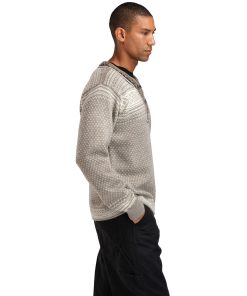 The Setesdal sweater in off white and black colorways (A and F) are made of 100% Norwegian wool, which is known for its warmth, breathability, and durability. The Norwegian wool comes from sheep that have adapted to the challenging weather conditions in Norway, and the fibers are especially well-suited for regulating body temperature and protecting against the cold. The wool is naturally moisture-wicking and has a unique ability to insulate. Norwegian wool is an important element in preserving traditional Norwegian craftsmanship, and the wool used in the Setesdal sweater is carefully selected to ensure high quality and durability.