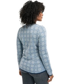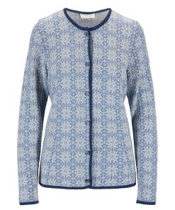 A thin, light wool jacket with button closure. The slimming side panel accentuates the feminine shape and gives the jacket a flattering silhouette. The detailed design is inspired by traditional Norwegian patterns, dominated by the eight-petal rose. The jacket is made of 100% soft merino wool.