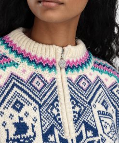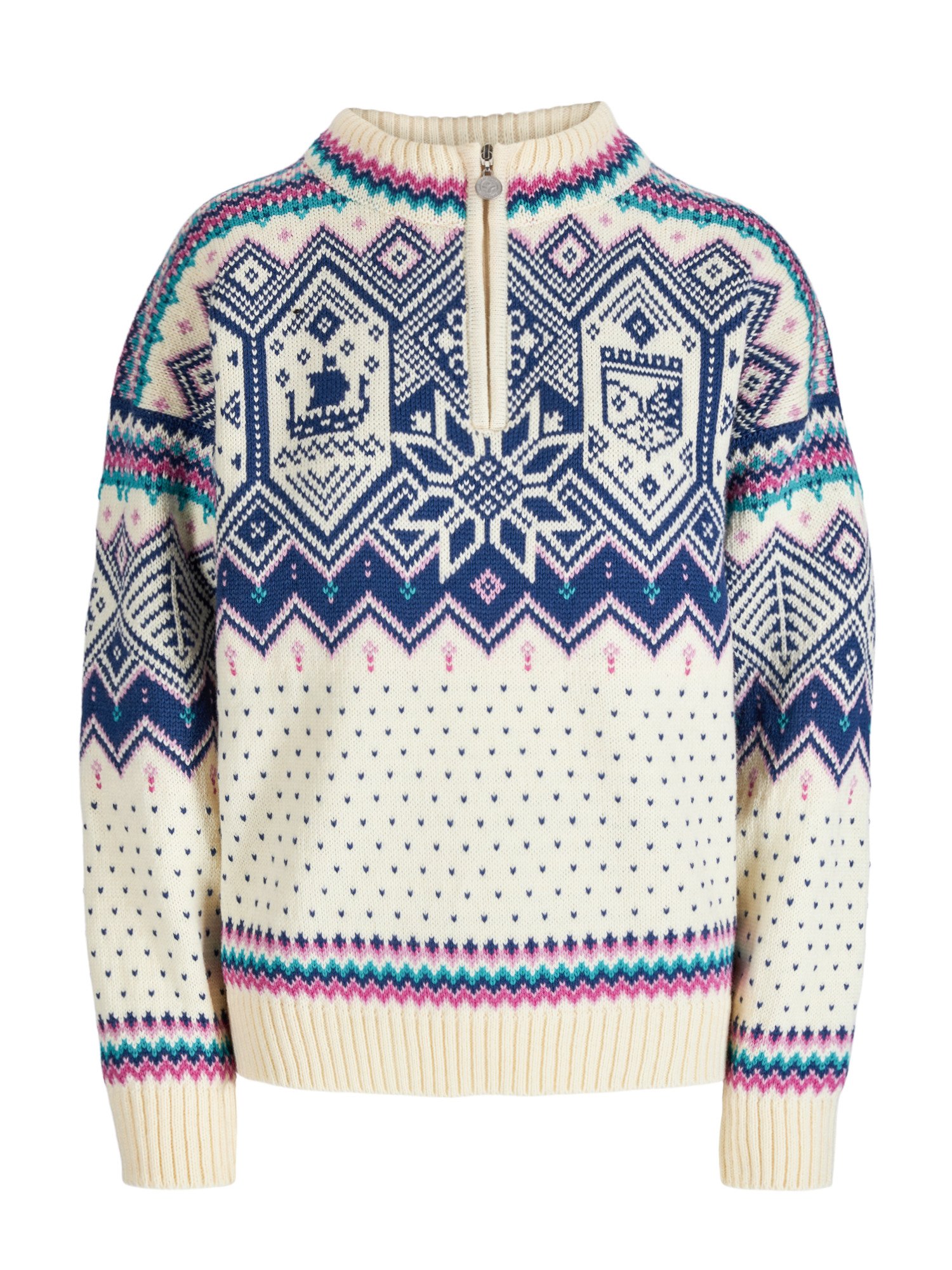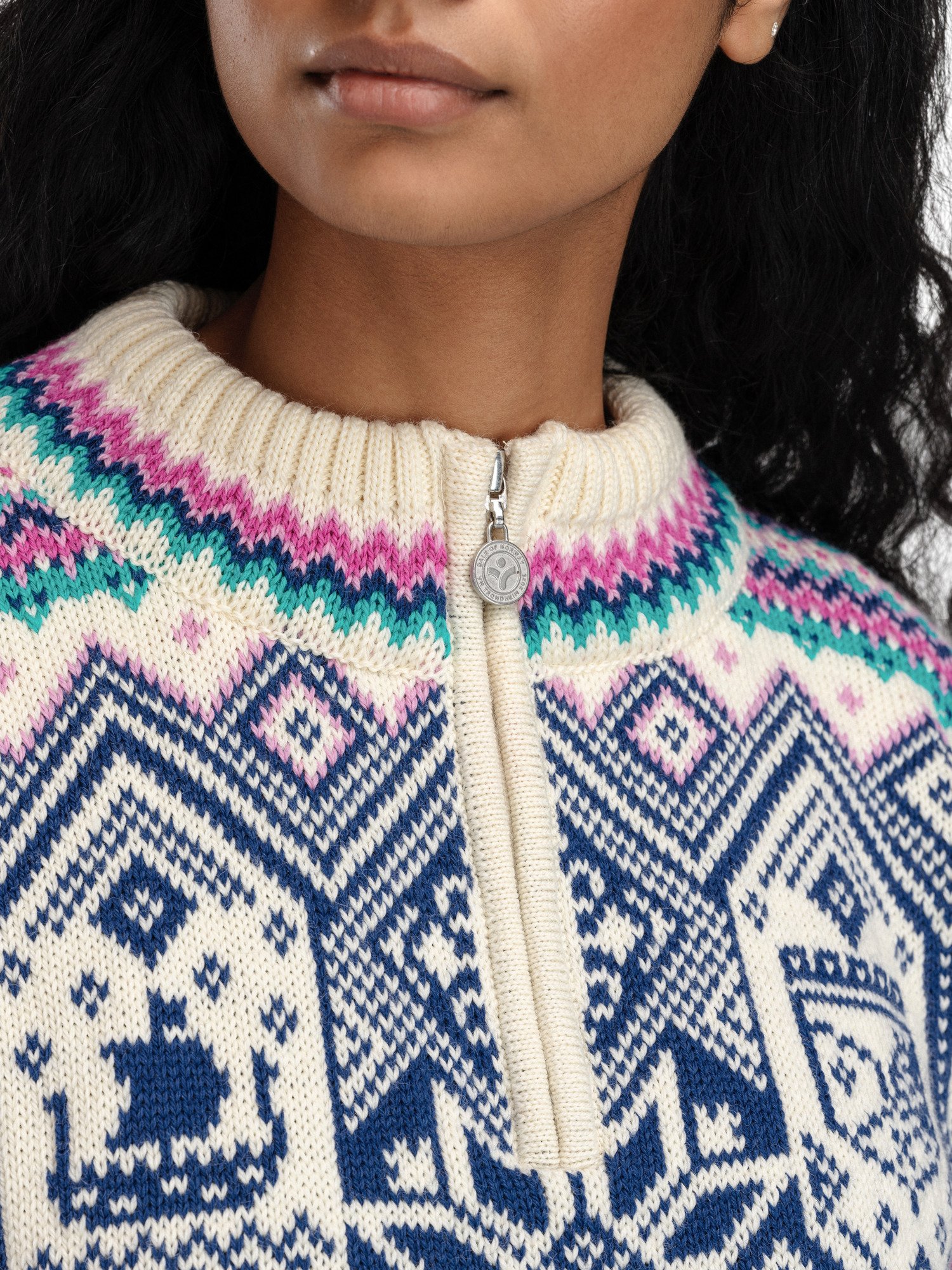 This is the official sweater for the 2025 Ski World Championships in Trondheim. A warm and comfortable wool sweater with a distinct retro touch, blending fresh colors with a classic expression. The pattern is inspired by the championship’s values of diversity and inclusion, while drawing motifs from historical cultural landmarks in Trondheim. The sweater is knitted in 100% wool for long-lasting qualities and features a medium-high neck with a zipper: