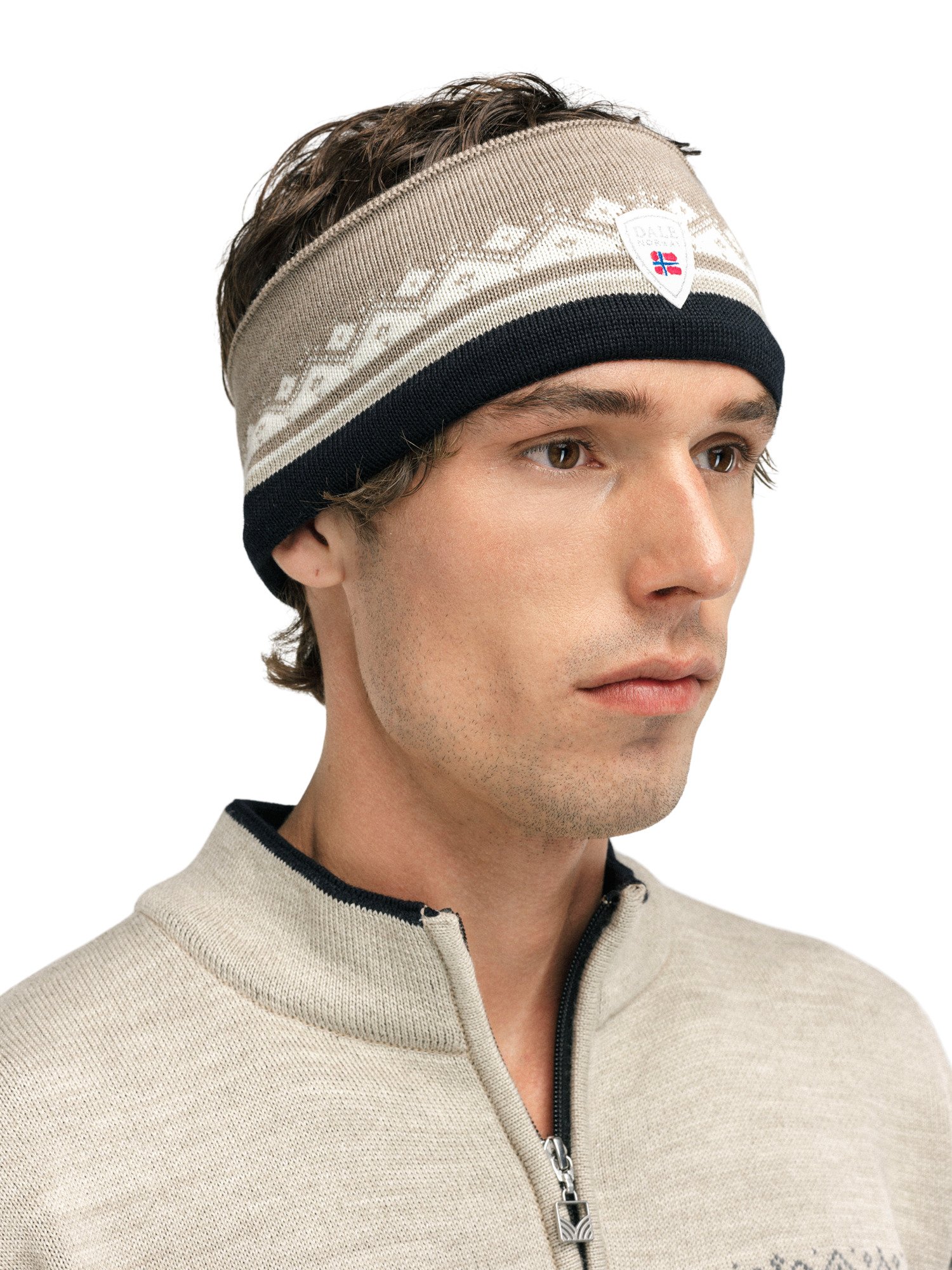 A sporty headband made with a 100% merino wool exterior for insulation and warmth, lined with a lightweight polypropylene layer for breathability, sweat-wicking, and itch-free comfort. The design is based on the original 2003 St. Moritz World Ski Championship sweater.