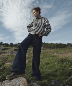 The Skipsleia sweater is a versatile unisex knit, designed as an effortlessly stylish layer. With its relaxed fit and allover stripe pattern paired with the traditional lice design, this sweater strikes the perfect balance between classic charm and contemporary comfort. As a unisex piece, it offers a slightly oversized look for women and a regular fit for men, creating an easygoing and adaptable style for everyone. Inspired by the historic Fana sweater and the iconic “Islender,” traditionally worn by Norwegian fishermen, the Skipsleia sweater incorporates distinctive stripes in the ribbing, enhancing its rugged workwear appeal. Designed with clean, simple lines, the Skipsleia sweater is made to stand the test of time.